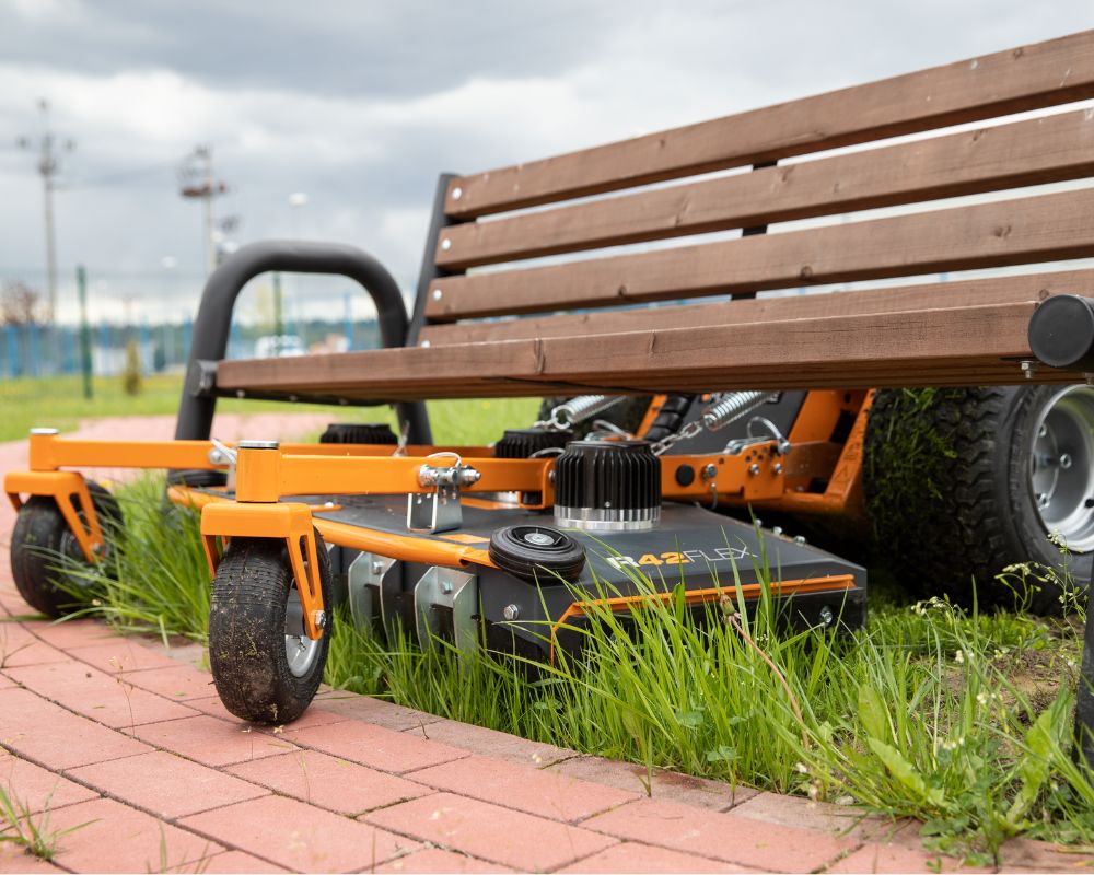 Jedną z kluczowych zalet kosiarek Raymo jest ich niski profil. Dzięki temu możliwe jest koszenie w przestrzeniach pod elementami infrastruktury technicznej oraz w miejscach o ograniczonej wysokości.