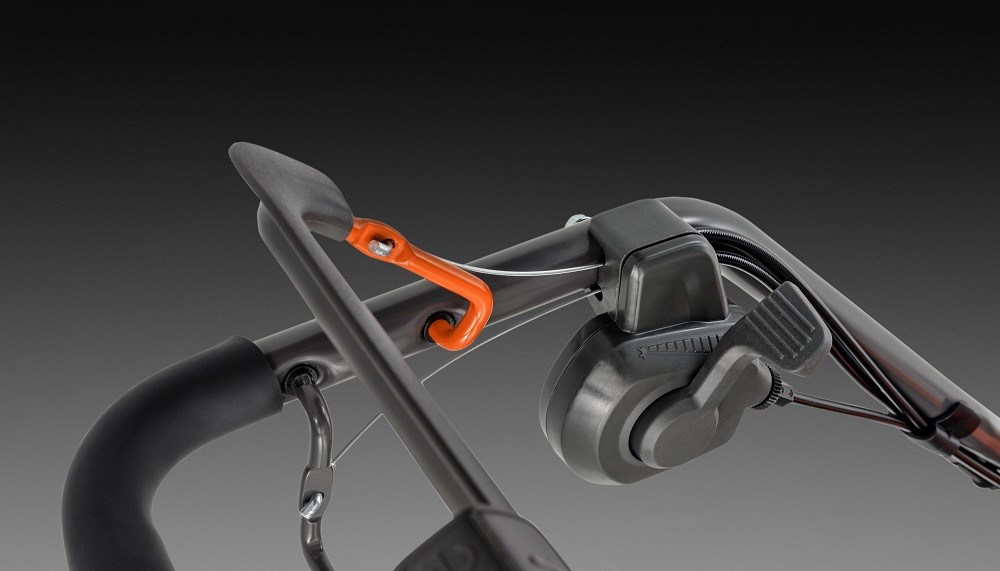 Ergonomiczny uchwyt i łatwo dostępny pałąk sprawiają, że obsługa kosiarki jest niezwykle prosta i wygodna. Regulacja uchwytu na dwóch wysokościach oraz wygodny uchwyt do podnoszenia z przodu ułatwiają manewrowanie maszyną w różnych warunkach.